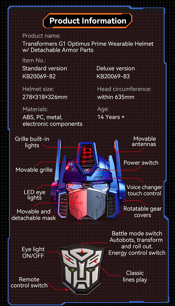 TRANSFORMERS Optimus Prime Wearable Helmet(Deluxe Version)